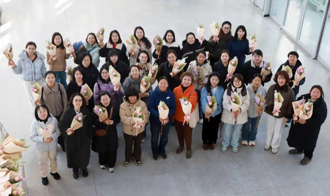 活动当日,学院为女教职工送上鲜花与节日祝福。一束束鲜艳花束传递着温暖关怀,女教职工们手持花束合影留念,笑容如春日繁花般灿烂,现场氛围温馨而热烈。