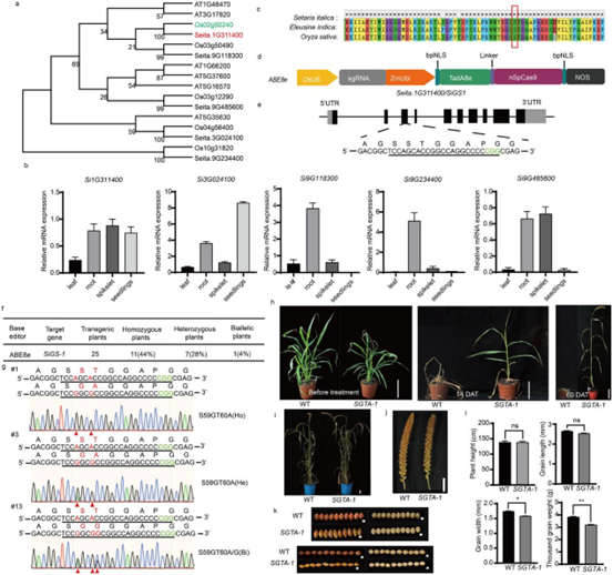 Fig.1 通过对 SiGS1 的碱基编辑培育出抗草铵膦的谷子品种