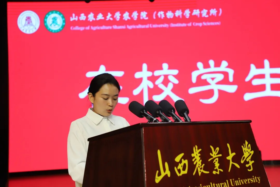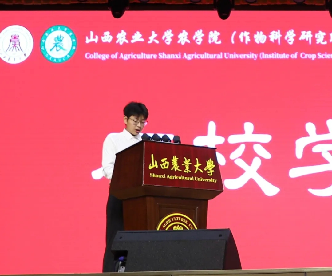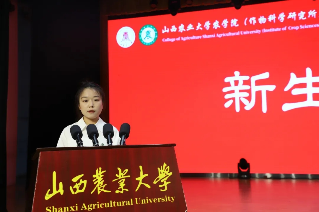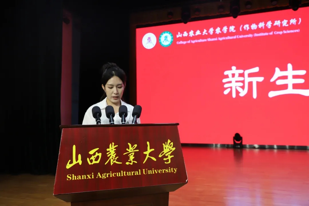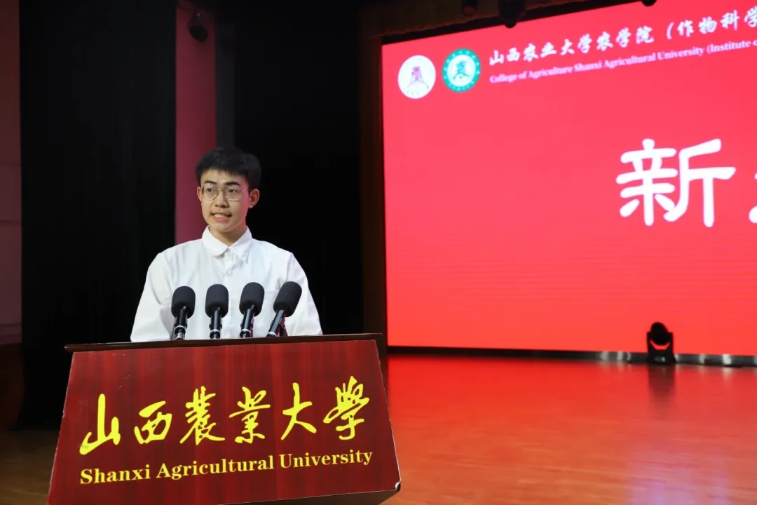 在学生代表发言环节,在校本科生代表臧海宁与研究生代表高舒林分别结合各自在我院求学成长的经历,鼓励2025级新生主动融入乡村振兴和社会主义现代化建设的伟大事业,以实干与担当书写无愧于时代的青春篇章。本科新生代表穆泽培、研究生新生代表杨静蕾与李雯在发言中郑重表态:会始终把初心使命牢记心间,以扎实的实际行动,坚信农学青年责任,守护心中的理想。