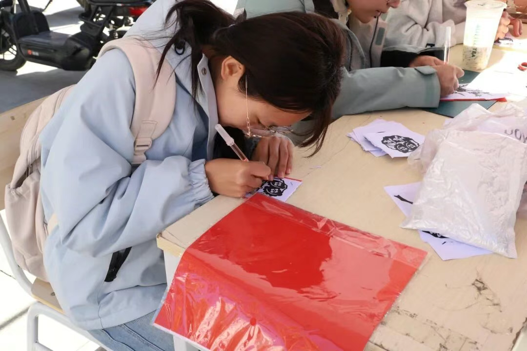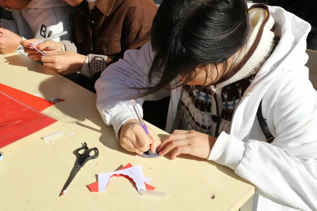 为丰富校园美育实践,弘扬中华优秀传统文化,传承非遗剪纸技艺,11月13日,我院剪韵艺社在谷园前面举办“镂刻冬韵,纸寄丰年”剪纸活动,吸引了众多同学参加。