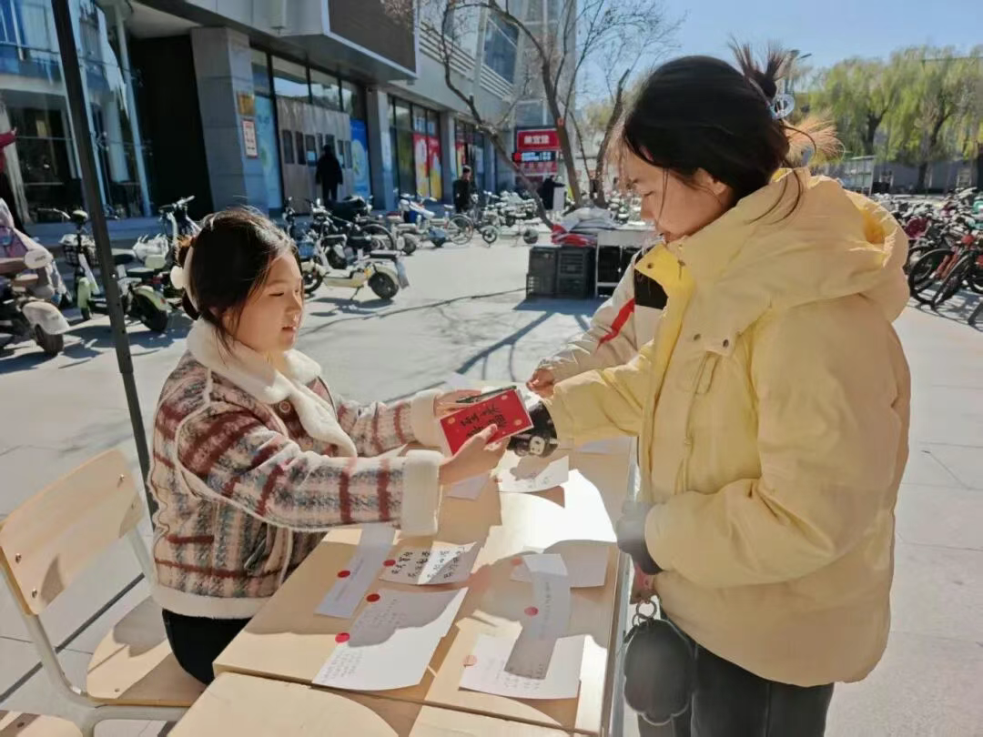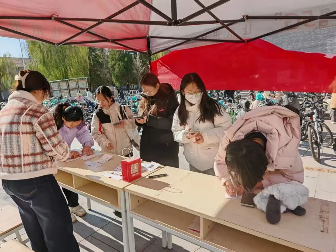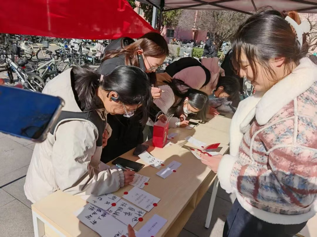 负责人将“种地需要上大学?”“你学的这个以后能用的上吗?”等负面标签贴在桌面,同学们纷纷拿起笔,在这些束缚性标签上划下叉号,以直观行动表达对偏见的拒绝。随后,大家在明信片上写下暖心寄语,贴在反驳的标签下方,用坚定的文字打破偏见的枷锁。参与活动的同学凭寄语领取了小礼品,现场氛围温馨而热烈。