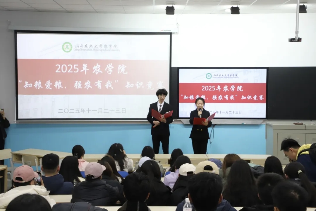 为深刻落实粮食安全与乡村振兴战略,增强青年学子的节粮爱粮意识,我院于11月23日在崇信楼201教室举办“知粮爱粮·强农有我”粮食安全知识竞赛,2025级全体本科生到场。