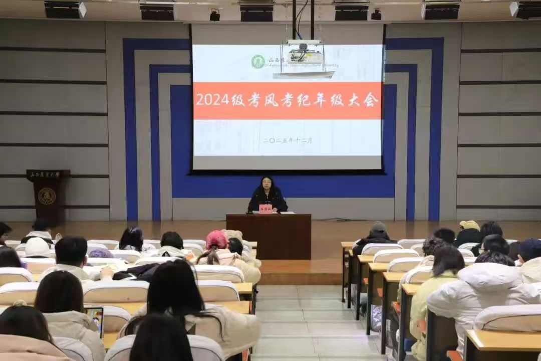 为切实强化学风管理,端正考风考纪,12月15日,我院于致远堂召开2024级考风考纪年级大会。本次会议由辅导员石佳凝主持,2024级全体学生参加。