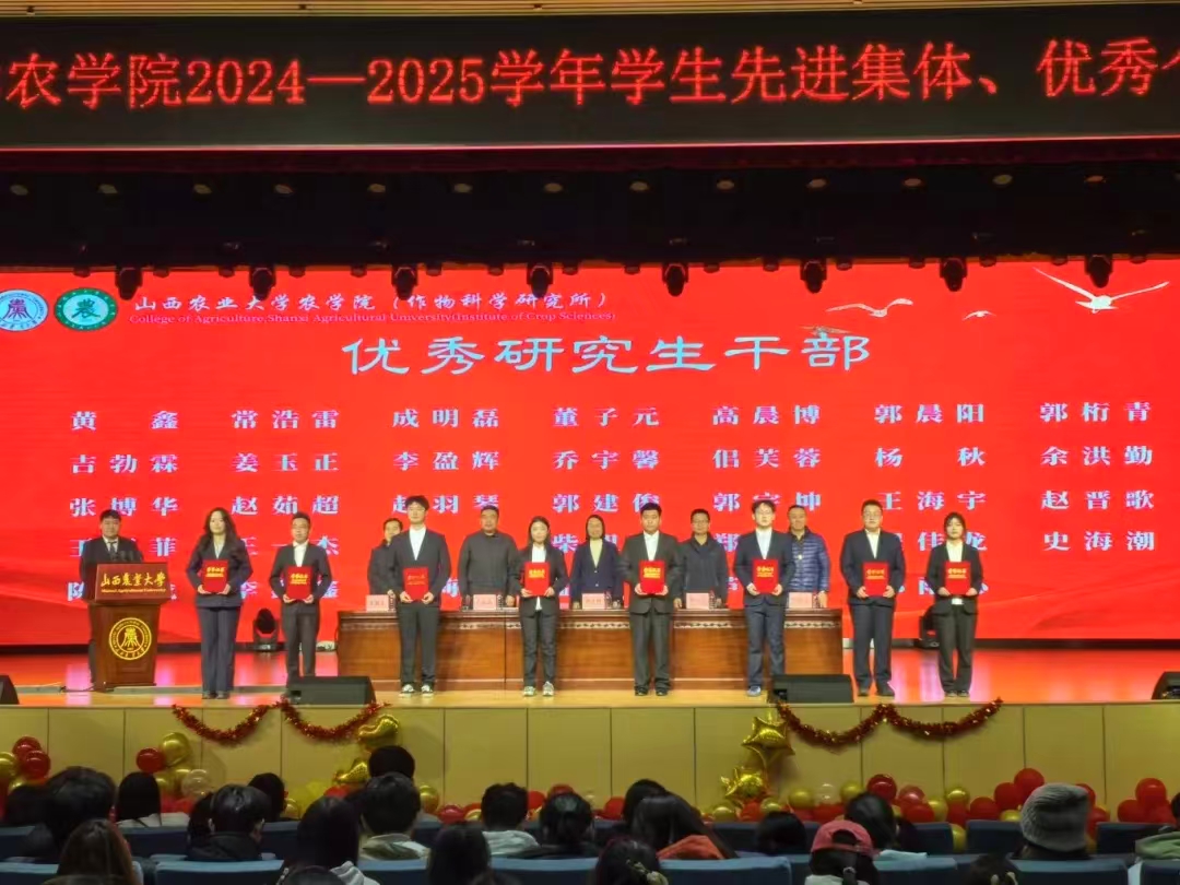 我院院长原向阳宣读《山西农业大学2024-2025学年学生先进集体、优秀个人表彰决定》,对本学期在学业科研、社会实践、集体建设等方面表现突出的先进集体和优秀个人予以表彰。