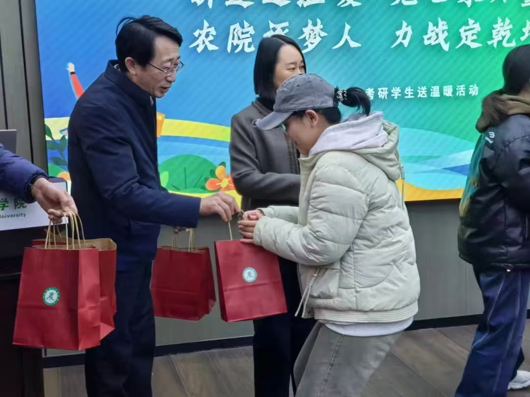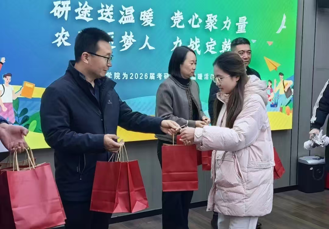 12 月 11 日下午,在太谷校区农学主楼 210 会议室举办 2026 届考研学生送温暖活动。学院党委书记荆立群、院长原向阳、党委副书记白益磊、副院长冯美臣、郭数进共同参与,以实际行动为即将迎来考研冲刺的学子们加油鼓劲。