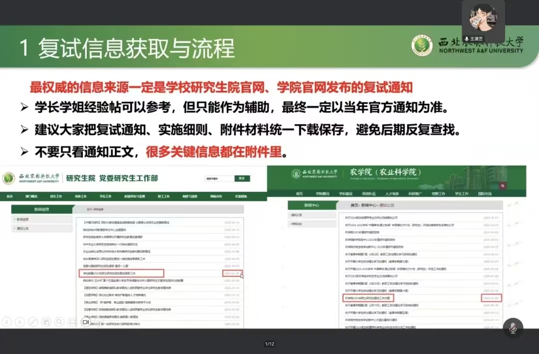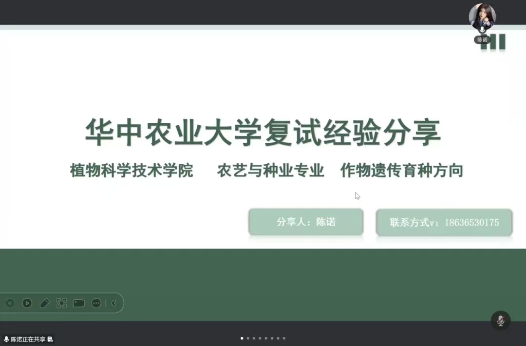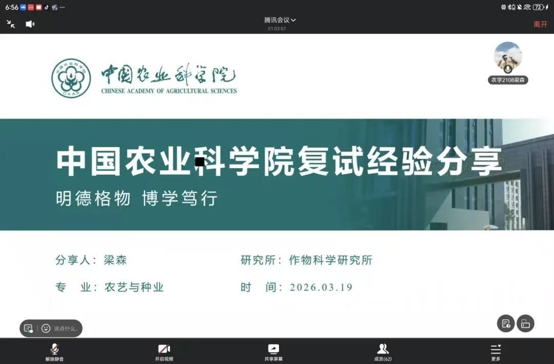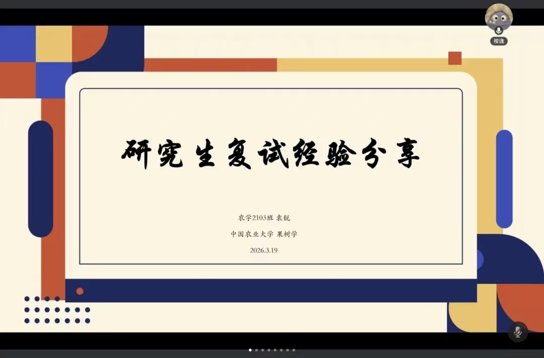 活动中,往届毕业生结合自身“上岸”经历,系统梳理了复试的标准化流程,并针对农学类专业课特性提供定制性建议。在导师联系层面,他们强调了“精准匹配”优于“广撒网”,讲解了凸显邮件亮点的技巧,警示了复试时的礼仪雷区。聚焦面试实战环节,他们分享了PPT制作要领及中英文自我介绍的打磨技巧,供我院学生参考学习。会议尾声,苏亚辉协助同学们整理并记录了八位分享者的联系方式,旨在建立长期有效的答疑机制,保障会后咨询渠道。