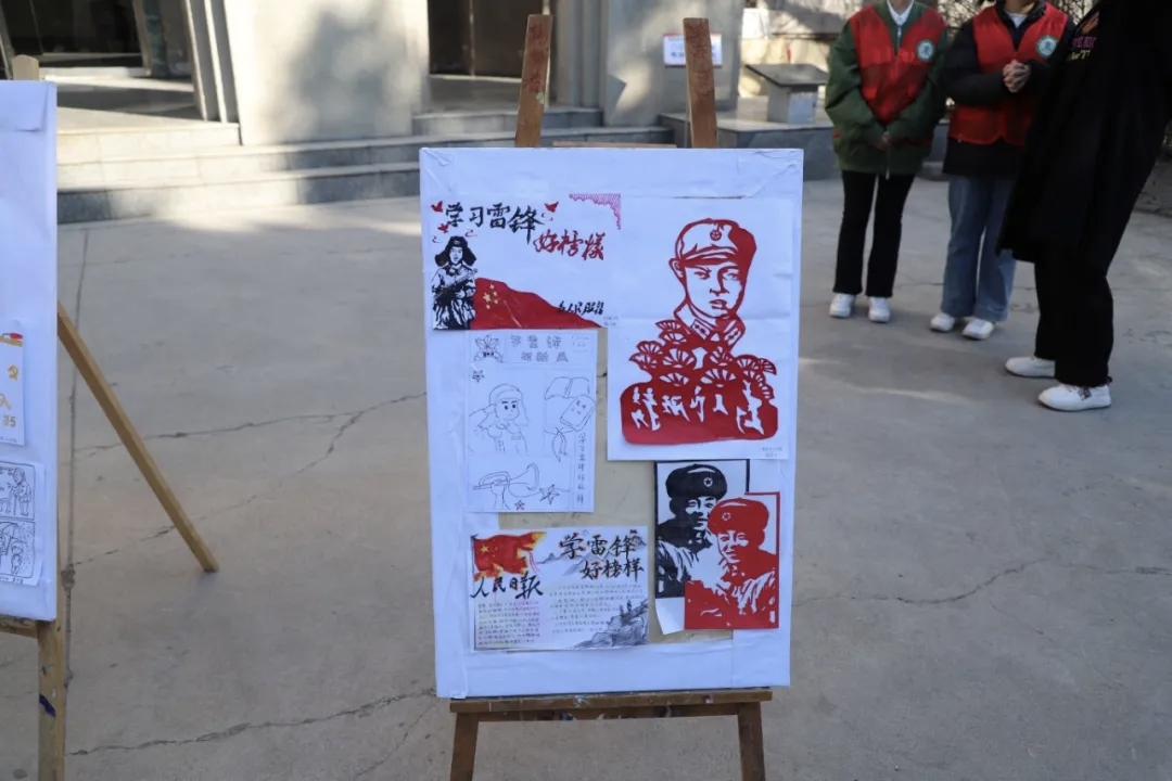 本次展出的作品均为学生原创,形式丰富多样。同学们以剪刀为笔、纸张为媒,用精巧的剪纸作品刻画雷锋形象;以摄影方式定格助人为乐的暖心瞬间,生动诠释了雷锋精神的时代内涵。活动志愿者向前来观展的师生讲解作品背后的故事,分享雷锋精神的时代内涵,号召大家从点滴小事做起,将 “奉献、友爱、互助、进步” 的精神融入日常学习生活。
